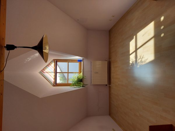 Das Zimmer ist in einer 120m² großen Wohnung integriert. Das Fenster geht in den Garten hinaus.