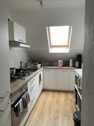 Waschmaschine, Mikrowelle, Einbauküche sind vorhanden.
