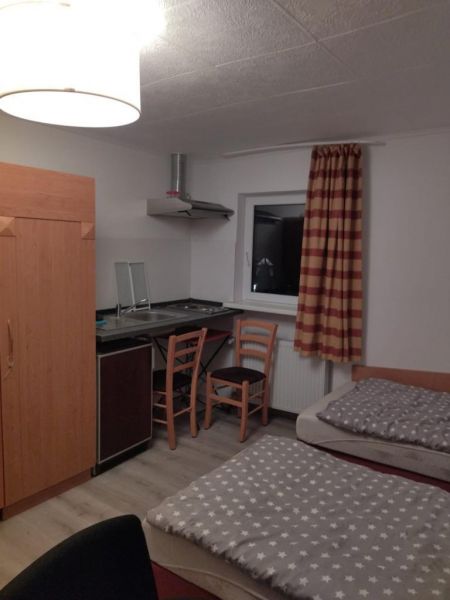 Küche: Gemeinschaftsküche mit: Backofen, Herd, Kühlschrank,