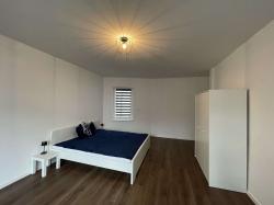 Neben diesem Zimmer gibt es noch 4 weitere Zimmer, eine neue Küche mit Herd, Backofen und Spülmaschine; einen Abstellraum mit großem Kühl-/Gefrierschrank und einer Waschmaschine; zwei Tageslicht-Bäder (1. Bad: WC, Badewanne, Dusche; 2. Bad: WC, Dusche), eine tolle große Dachterrasse und einen Kellerraum.