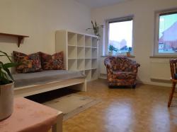 Das Einfamilienhaus liegt in einer Nebenstraße, welche nur Anlieger befahren. Das Zimmer liegt in einer abgetrennten Einliegerwohnung (55 m²). Die Küche (7m²) enthält eine gute Einbauküche, Mikrowelle plus Geschirrspüler u. s. w.