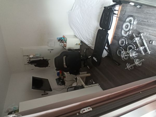A tv from JVC with full-HD, duckboards for a mattress, a wardrobe, a small table, bench for working out and a nightstand, as pictured, are all included. A realtor's fee of 500 EUR is also necessary. This payment is mandatory, since I had to make this payment too for the last renter for both the equipment and realtor's fee.