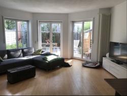 4er-WG in zweistöckigem Reihenhaus mit zwei Terrassen à 25m2, eine vorne und eine am Wohnzimmer dran. Gemeinschaftsfläche (insgesamt ca. 60m2): Im Erdgeschoss befindet sich die Küche mit Spülmaschine, das Wohnzimmer mit Esstisch, großer Couch, Kamin, Fernseher und Stereoanlage sowie der Flur und das Gästebad.